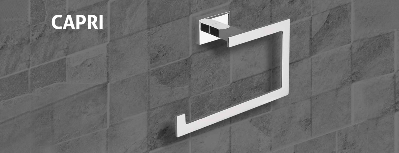 Serie de accesorios de baño CAPRI fabricada en latón cromado brillo.