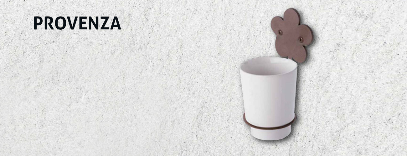 Serie de accesorios de baño PROVENZA fabricada en acero lacado con textura y con tres tipos de acabados a elegir: Marrón forja, blanco texturizado y negro forja.