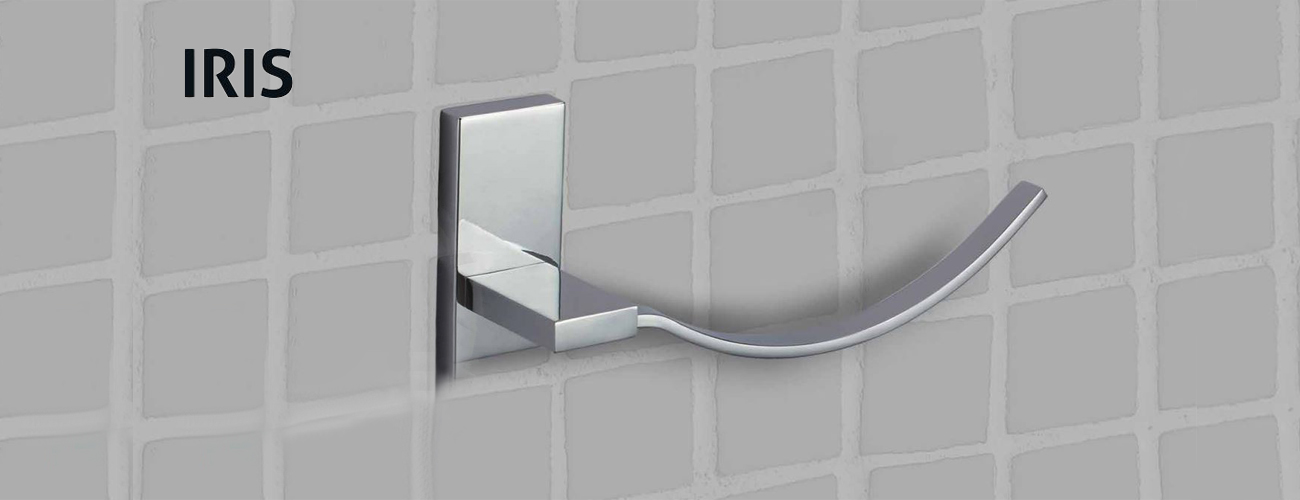 Serie de accesorios de baño IRIS fabricada en latón macizo y cromado brillo.