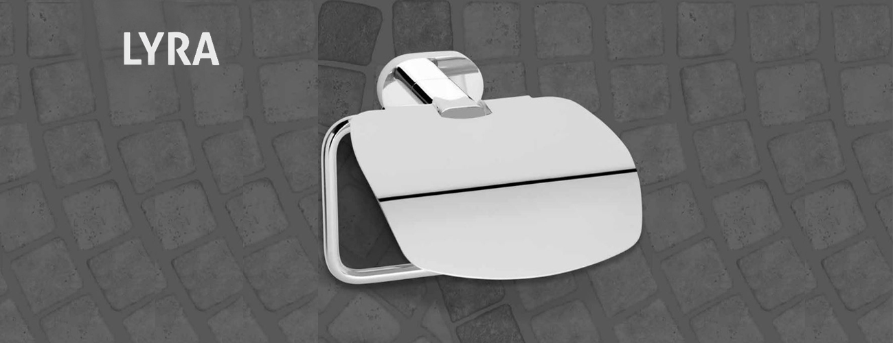 Serie de accesorios de baño LYRA fabricada en latón cromado brillo.
