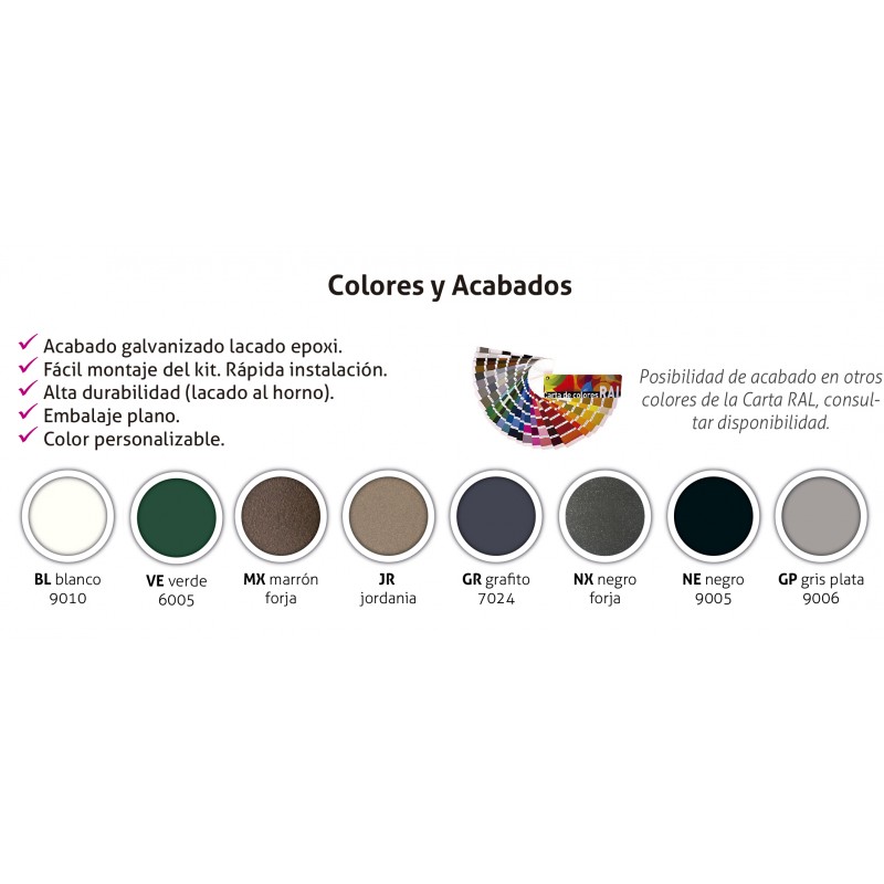 PANEL DE VALLA DE ACERO GALVANIZADO DE 144Cm DE LONGITUD Y 44Cm DE ALTURA (PARA VALLAS DE 50Cm) CON POSIBILIDAD DE ELEGIR ENTRE 3 COLORES DIFERENTES; BLANCO, NEGRO FORJA Y MARRÓN FORJA (CONSULTAR PARA MÁS OPCIONES).