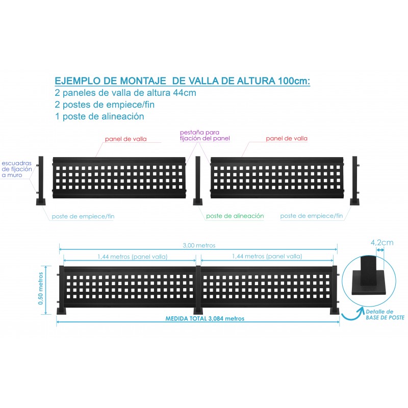 PANEL DE VALLA DE 44Cm DE ALTURA x 144Cm DE ANCHO, PARA VALLA DE ALTURA 50 CENTIMETROS