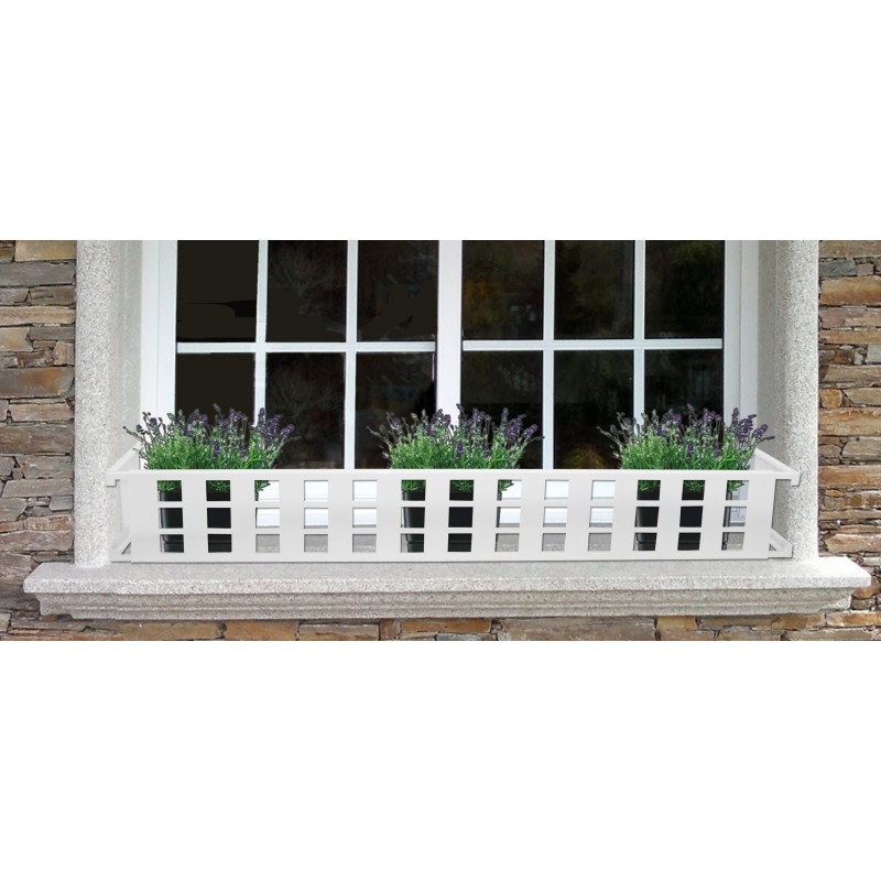 BALCONCILLO PROTECTOR DE MACETAS CUADROS BLANCO FABRICADO EN ACERO GALVANIZADO LACADO AL HORNO, LO QUE PROPORCIONA UNA ALTA DURABILIDAD.