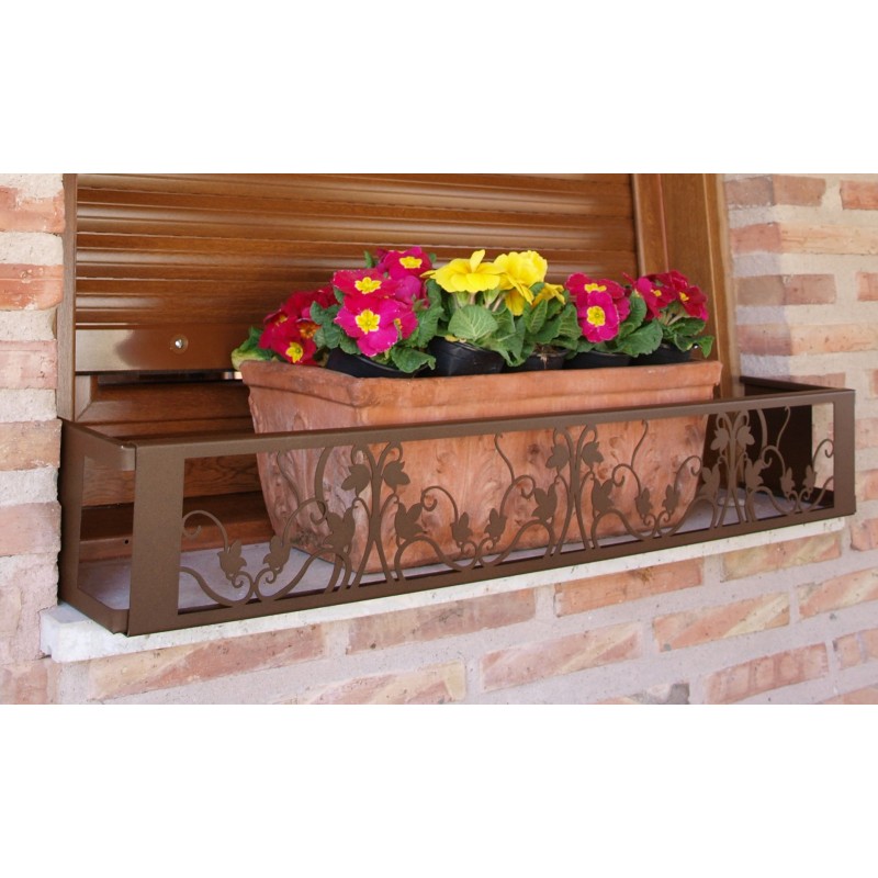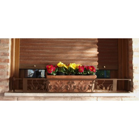 BALCONCILLO PROTECTOR DE MACETAS FLORAL MARRÓN FORJA FABRICADO EN ACERO GALVANIZADO LACADO AL HORNO, LO QUE PROPORCIONA UNA ALTA DURABILIDAD.