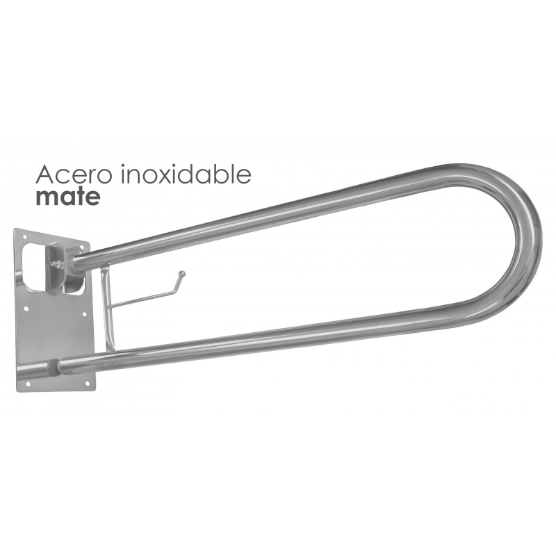 BARRA DE APOYO ABATIBLE Y GIRATORIA CON PORTARROLLOS FABRICADA EN ACERO INOXIDABLE BRILLO O MATE.