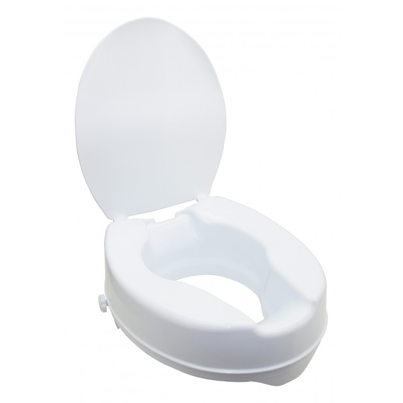 ELEVADOR DE 10CM CON TAPA PARA INODORO FABRICADO EN POLIETILENO DE ALTA DENSIDAD BLANCO Y ADAPATABLE A LA MAYORÍA DE WC.