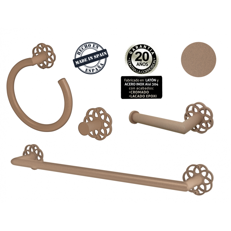 SET MANDALA JORDANIA (Portarrollos sin tapa, percha, toallero redondo y toallero recto).
