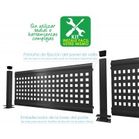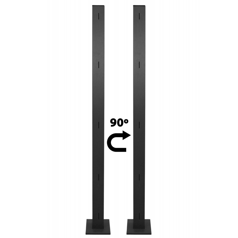 LOS POSTES DE ESQUINA TIENEN LAS RANURAS DISPUESTAS EN DOS CARAS CONTIGUAS PARA INSTALAR LOS PANELES DE VALLA FORMANDO UN ÁNGULO DE 90º.