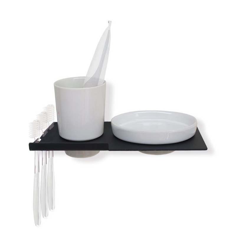 JABONERA CON VASO Y SOPORTE DE CEPILLOS TRIPLE (INCLUYE VASO Y JABONERA DE PORCELANA)