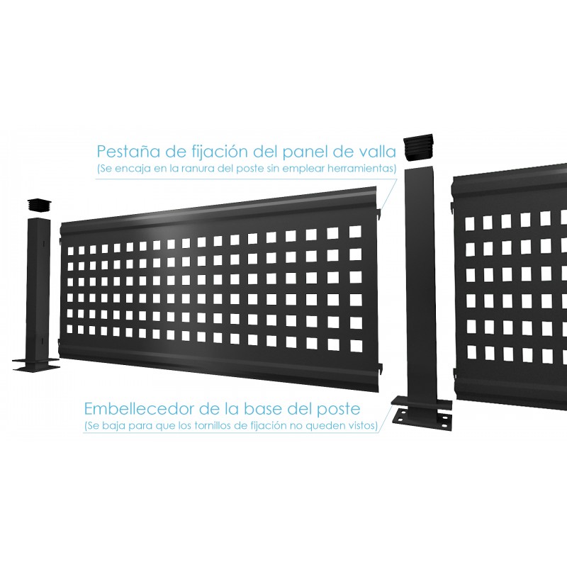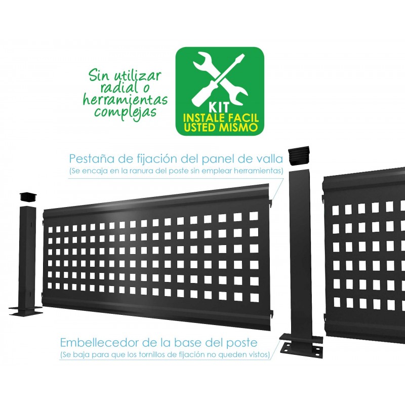 PANEL DE VALLA DE ACERO GALVANIZADO DE 144Cm DE LONGITUD Y 194Cm DE ALTURA (PARA VALLAS DE 200Cm DE ALTURA) CON POSIBILIDAD DE ELEGIR ENTRE 3 COLORES DIFERENTES; BLANCO, NEGRO FORJA Y MARRÓN FORJA (CONSULTAR PARA MÁS OPCIONES).