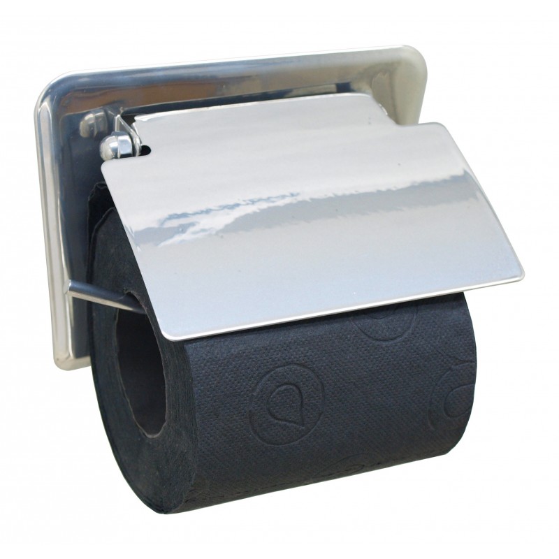 PORTARROLLOS CON TAPA BASIC FABRICADO EN ACERO LACADO EN EFECTO CROMO O BLANCO BRILLO.