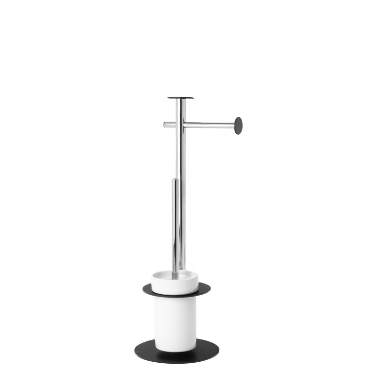 PORTARROLLOS ESCOBILLERO DE PIE REDONDO FABRICADO EN ACERO CROMADO Y ACERO LACADO CON POSIBILIDAD DE ELEGIR EL COLOR DE LA BASE ENTRE 8 OPCIONES DISPONIBLES (Blanco mate, Negro mate, Marrón forja, Blanco texturizado, Negro Forja, Gris piedra, Jordania y Oro mate).